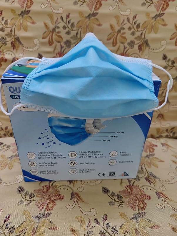 1102 reviews for QUARANT Melt Blown – SMMS Fabric 3 Ply Disposable Face Mask with Nose Clip and Reusable Travel Pouch (Blue, Pack of 100) for Unisex